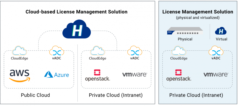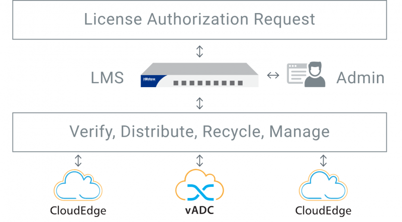 Hillstone License Management System (LMS) is a dedicated license management solution for virtual network function deployment such as Hillstone CloudEdge and virtual ADC. The LMS solution breaks the limitation of existing appliance-based license management solutions and provides cloud service providers (CSPs) a more flexible, efficient and automatic solution to centrally manage license for the virtual appliances deployed inside their cloud, no matter the deployment scenario or environment.